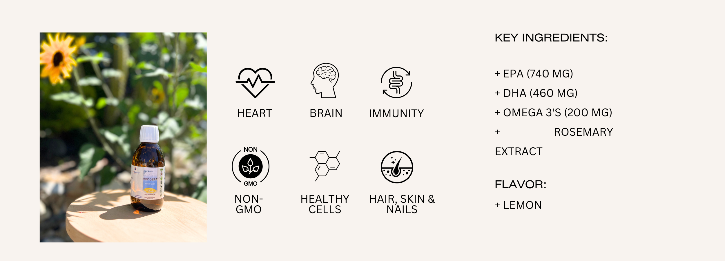 + EPA (740 mg): is a type of omega-3 fatty acid that supports heart health by reducing inflammation, lowering triglyceride levels, and promoting overall cardiovascular function.