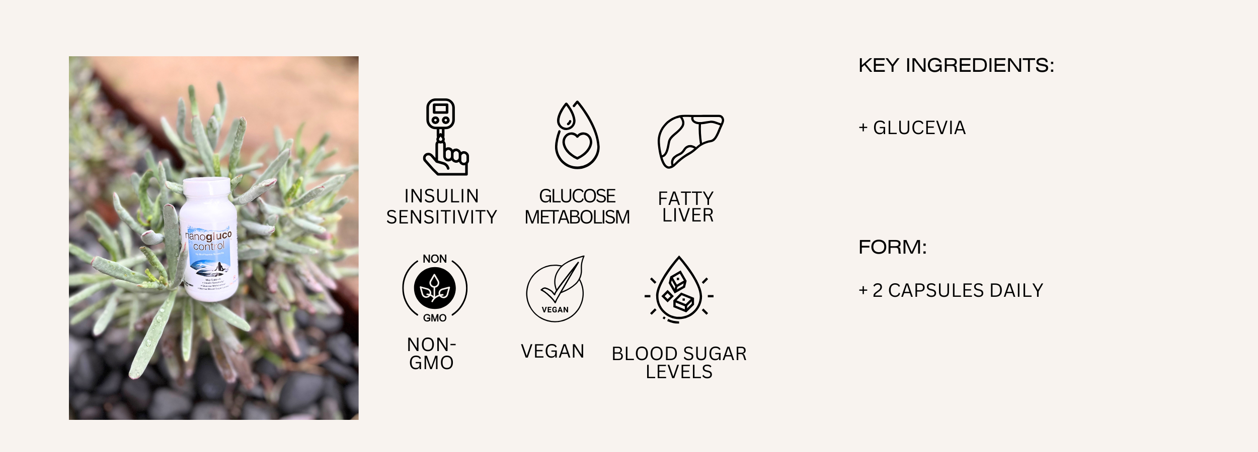 NanoGluco helps you stay balanced by supporting healthy blood sugar and weight management in one formula. Powered by Glucevia™, a patented extract from the Fraxinus Excelsior (common ash tree), it works to manage both complex and simple sugars for optimal glucose metabolism. By keeping blood sugar steady, NanoGluco reduces cravings, supports satiety, and encourages healthier eating habits. It helps activate your body’s GLP-1 response while also supporting liver health—the key organ for blood sugar balance. Gentle yet effective, NanoGluco is safe for daily use whether you’re focused on metabolism, energy, or maintaining a healthy weight