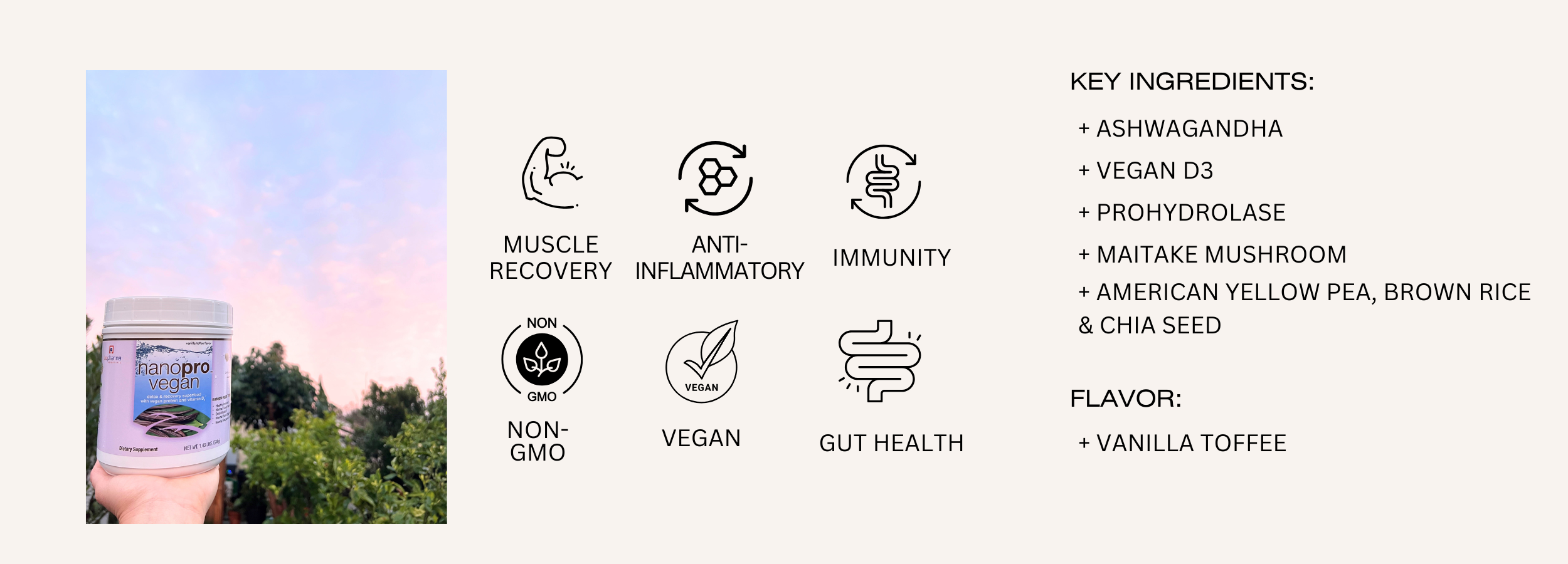 NanoPro Vegan is a plant-based protein supplement designed to support muscle recovery, energy, and overall wellness. It uses high-quality, vegan protein sources like pea protein, rice protein, or other plant-derived ingredients to provide a complete amino acid profile.